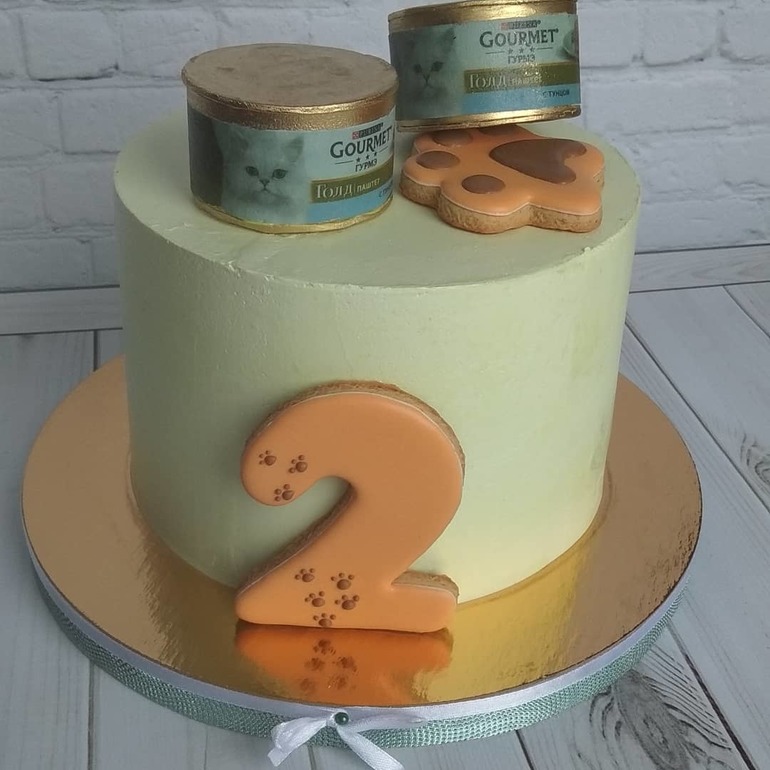 Украшение тортов кремом,шоколадом, фруктамиДавно здесь не была. Тортики были, но не очень интересные. Да и вообще в последнее время хочется больше в пряники уйти. Большее время им посвящаю. Вот недавно случился заказ на двухлетие Мейн-Куна 🤔. Дизайн на мое усмотрение). Внутри фисташка-малина, 2.3 кг. Внутри консервов тоже торт. Под катом разрез торта и консервов.