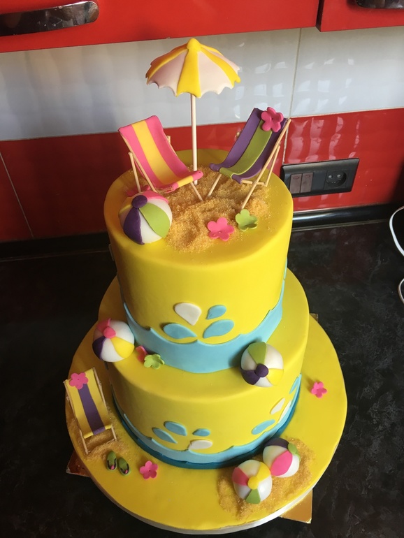Торт сфотографирован свеху... по сему не видно некоторых моментов.. , но видно, что ярусы высокие и при этом обтянуты без складок, бока ровные...ну для новичка на отлично...а "новичек" -это сколько тортов за плечами? Я делаю торты полтора года....и считаю себя тоже новичком)))