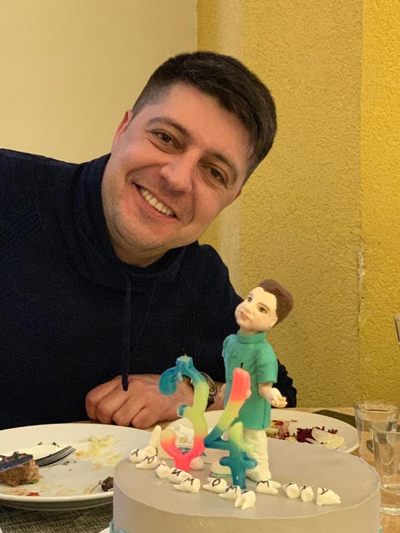 Украшение тортов кремом,шоколадом, фруктамиКлубничный поцелуй, 3 кг. Помидорами не закидывайте, портретной лепкой не занимаюсь и не обещаю, да и вообще редко леплю человекОВ. Просили просто фигурку "Палка, палка, огуречик, вот и вышел человечек", но фото стоматолога прислали ))))) я ж ответственная, попыталась хоть капельку соответствовать типажу. Хозяин остался доволен, я конечно ждала отзыва, очень переживала, его еще везли в Подмосковный клуб-отель. Фото подкатом