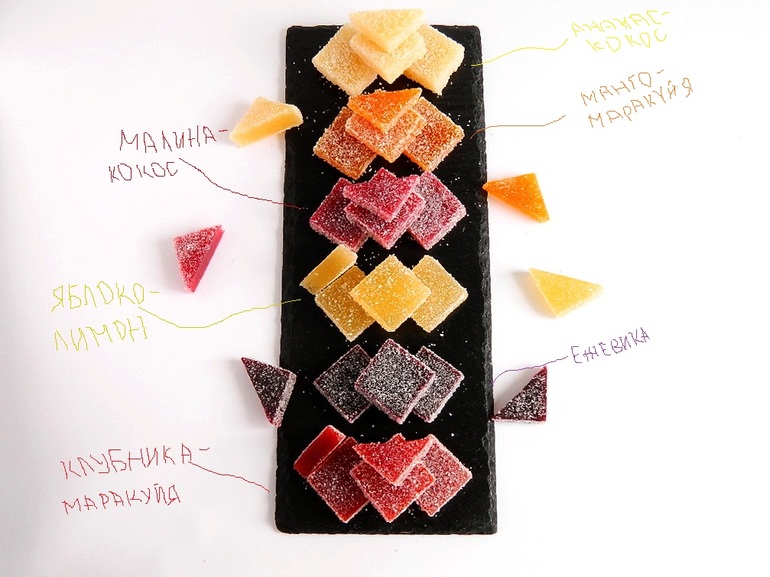Яблоко-лимон. Этот мармелад по вкусу мне напомнил баночное яблочное пюре для малышей. У него очень приятная, нежная текстура и он наименее сладкий из всех, с приятной кислинкой.
