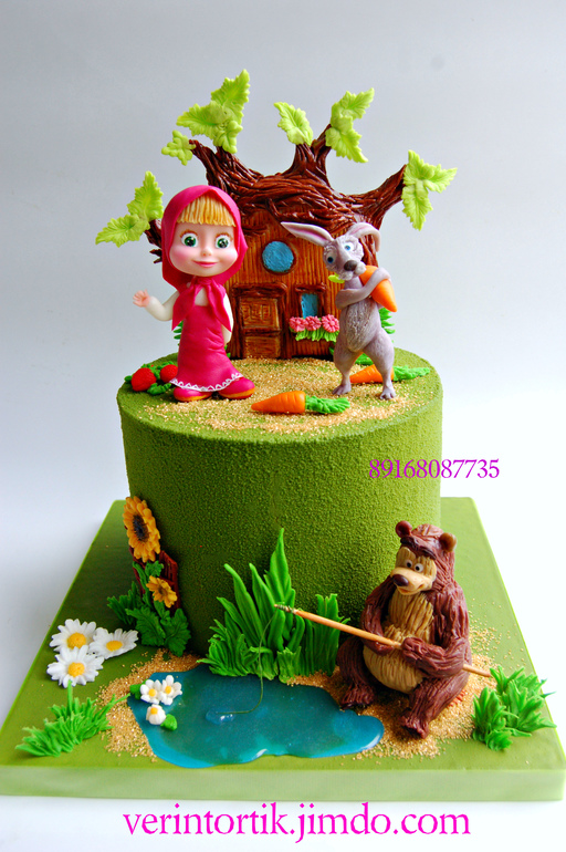 прелесть какая.. и отличное решение разместить медведя и Машу на разные ярусы, избежав тем самым проблемы соразмерности.. шикарный торт, Вер