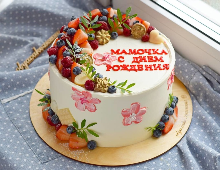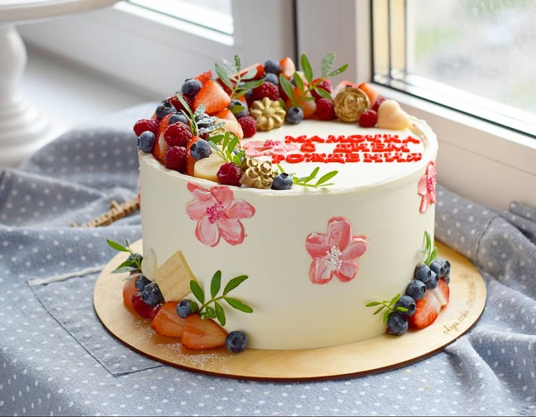 Украшение тортов кремом,шоколадом, фруктамиВнутри ванильный бисквит, клубничный мусс, сливочно-сырный крем и малиновый соус.