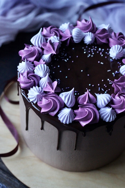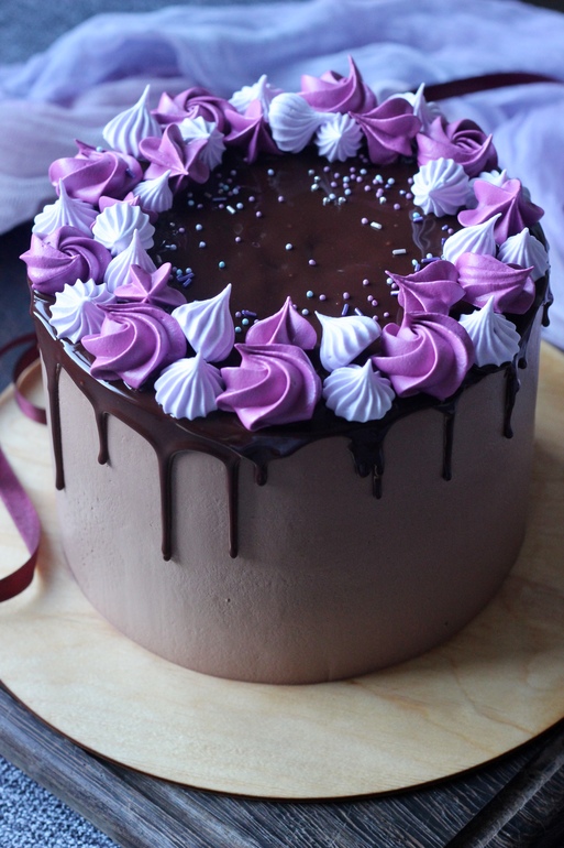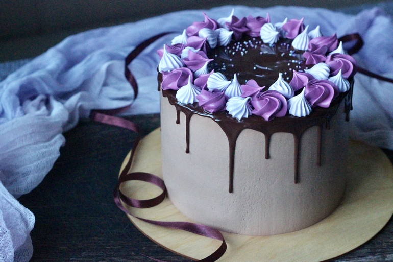 Украшение тортов кремом,шоколадом, фруктамиТортик 2,5 кг, "Вишня в шоколаде", декор -безе. Фото в 6.30 утра. Разбавлю вчерашнюю тоску)))) все ярко