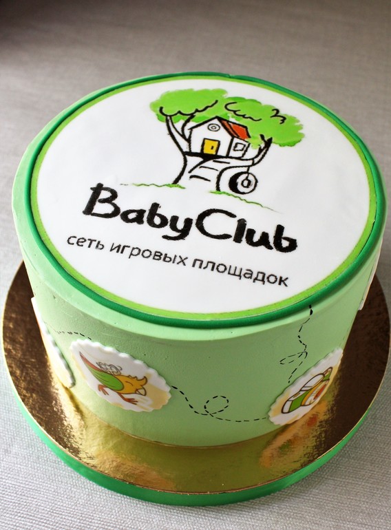 Небольшой корпоративный тортик для сети детских площадок нашего города - фирменный логотип и рисунки с официального сайта компании.