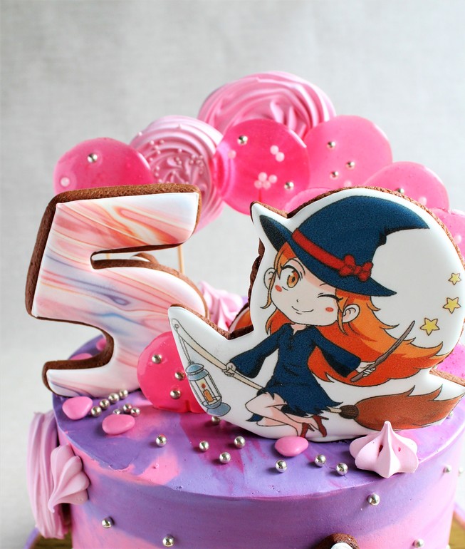 Именинница хотела видеть на своем торте злую колдунью, но они все какие-то злобные старухи с бородавками. Поэтому в конечном варианте торт украсила эта веселая ведьмочка...