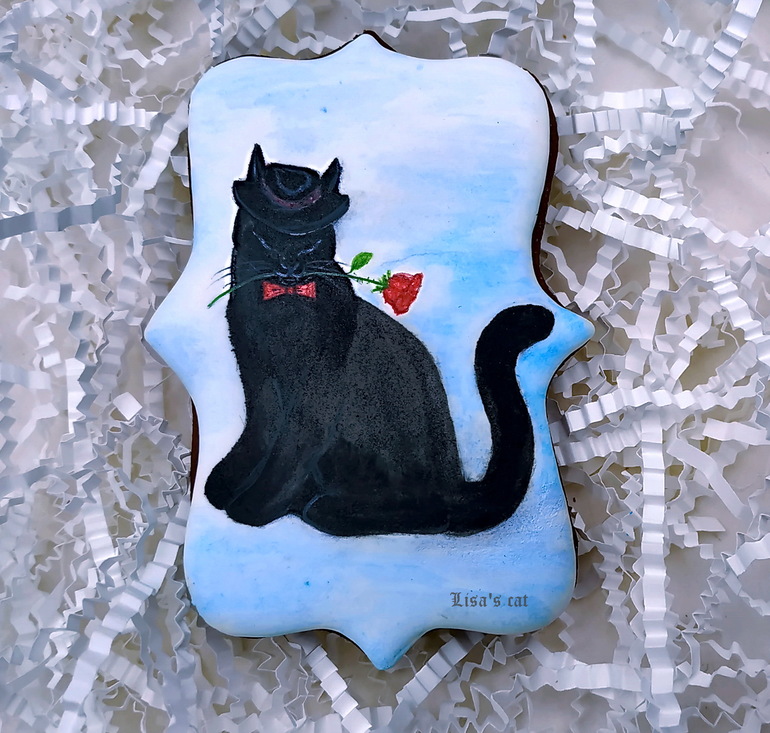 не.. ну не на меренговом же рулете мне было котика малевать?) А котик (по традиции) всегда есть на презентах для неё))