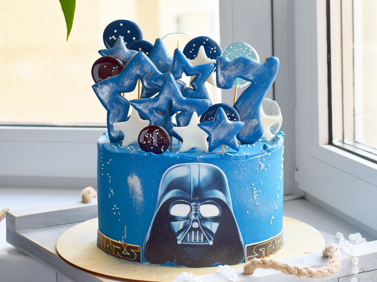 Украшение тортов кремом,шоколадом, фруктамиКосмический в стиле "Звёздных войн".