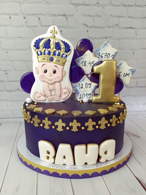 Торты детскиеНу или королевский 😄. Нужен был торт с синими леденцами и карапузом в короне. Вот, что в итоге получилось. Торт большой, 4 кг. Внутри Красный бархат с клубникой
