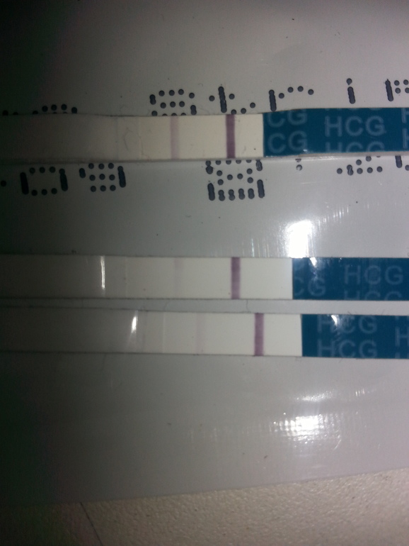 На первом фото указанны на желтом фоне два теста это первый день задержки, на втором фото где указанны три теста на белом верхний это 4 день задержки и два нижних это 7 день задержки!!!! Вы тоже видите что тесты стали тускнее(((( хгч на 8 день задержки 27,3 . Замерла???? ((( или есть шанс???