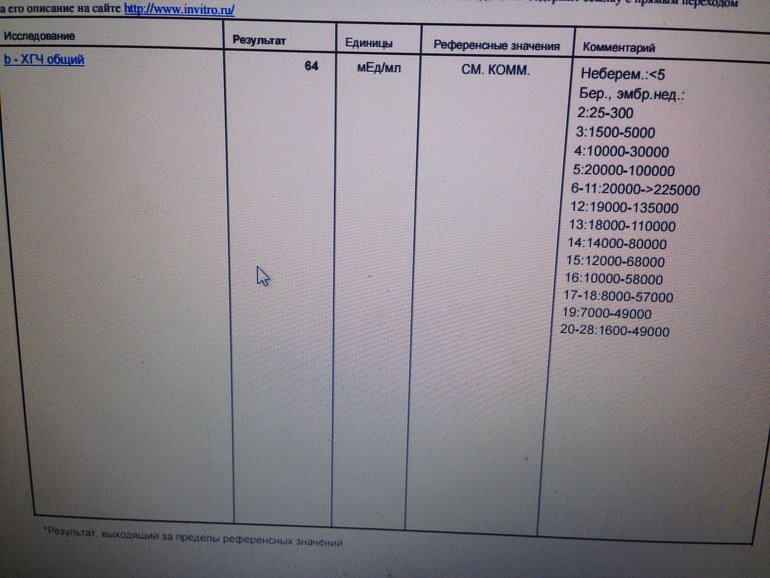 девочки, вот только что получила результат. Что это? консультант сказал эмбриональный срок в раоне 2ух недель. Поэтому узи не видит? расшифруйте а