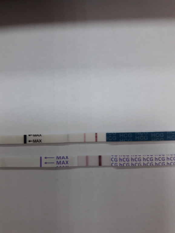 Эвик и экспресс-тест, экспресс делала ради интереса)))Жду еще хгч для динамики, на 11 дпо был 35,6...Посмотрим, что покажет на 13й🤗🤰😇🍼