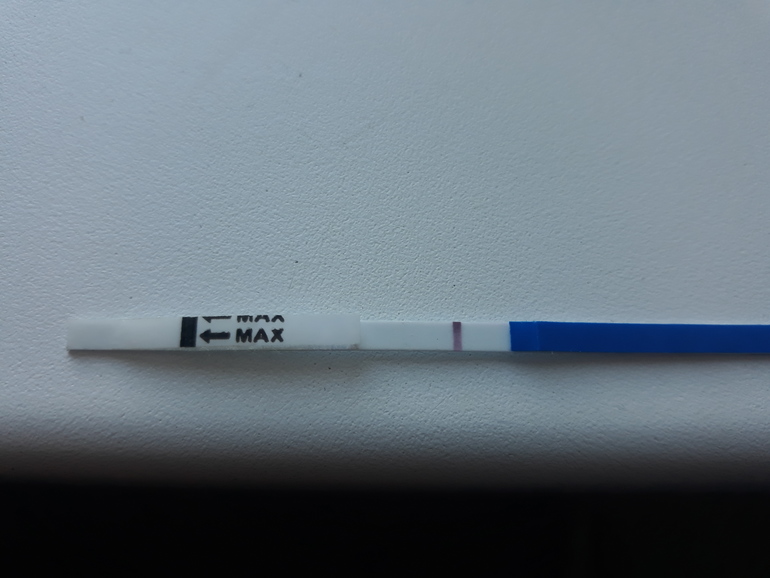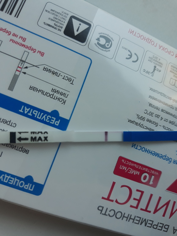Еще со вчера планировала первый тест сделать сегодня, но меня почти всю ночь мучала бессоница, и поэтому я утром сонная сходила в туалет благополучно позабыв про тест. Опомнилась,спустя 30 минут операция была проведена успешно) Результат на фото-спустя 2 минуты. Что-то цепляет глаз? Фото не так передает( фокус близко не ловит камера. В живую хорошо видно тоненькую бледно-розовую полосочку.