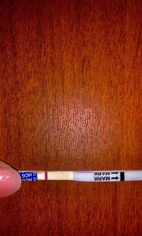 Фото не много затемнила. Марку теста не помню, точно не эвик. Не хочу себ обнадеживать просто так. За 4 месяца в первый раз такой реагент. В жизни чуть лучше видно чем на фото.