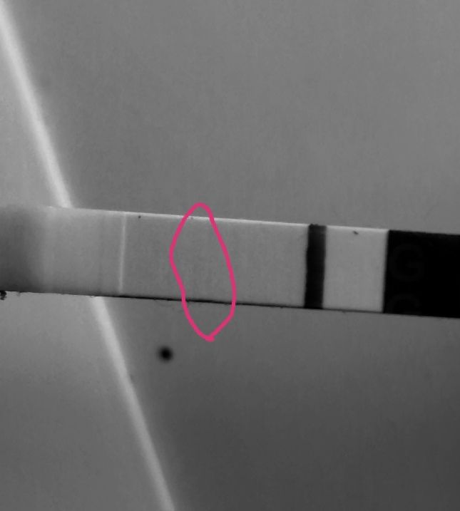 Полоска внутри пустая. С большей вероятностью это,к сожалению,реагент...