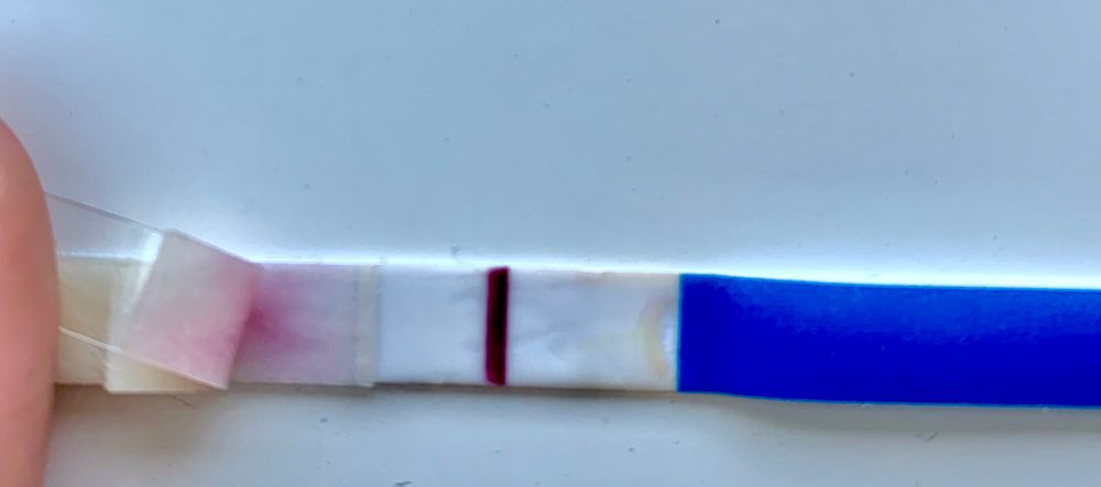 Такое ощущение, что вы на него пописали, потом он высох, а потом Вы ещё раз это сделали. Об этом говорят подтёки жёлтые. Я когда-то экспериментировала так. Толку в этом тесте нет.