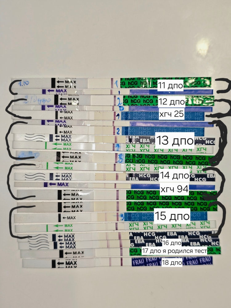 Спасибо, что выложили по дням) 1 день задержки,12 дпо, тест очень не яркий. Еле видно. Но видно)
