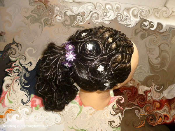 ДВ!Хотела спросить по поводу прически для дочки. Нам нужна косичка красиво заплетенная или просто собранные в какую-то прическу наверх волосы и сверху у нас должна быть диадема,Волосы ниже лопаток..Возможно?