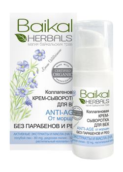 Коллагеновая крем-сыворотка для век, созданная на основе экстрактов растений Байкала, интенсивно ухаживает за нежной кожей век, помогая надолго сохранить ее упругость и молодость.Растительный коллаген восстанавливает эластичность кожи, разглаживает морщины, голубой лён питает и успокаивает, адаурская лилия прекрасно тонизирует кожу.Благодаря натуральным активным компонентам, крем сокращает количество мелких морщинок, разглаживает и восстанавливает нежную кожу вокруг глаз, придает взгляду сияние молодости.Не содержит парабенов и PEG.Далее