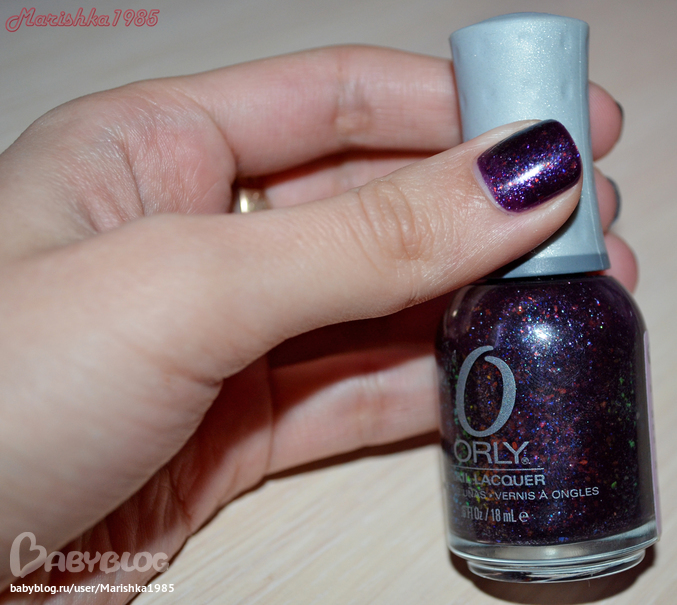 Давно уже поняла, что лак во флаконе и на ногтях не всегда одинаково красиво смотрятся. Так что при покупке всегда есть риск купить красивый лак, который на ногтях будет вообще никакой. Но это конечно не про этот лак.))) Orly "Fowl play" 40753 очень красивый во флаконе и такой же красивый на ногтях. Это глубокий темно-фиолетовый желейный лак имеет в своем составе шимер и слюду, которые вместе красиво сочетаются.