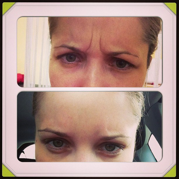 Но меня начинали напрягать мои межбровные и плюс лоб,на фото думаю все понятно.С утра можно было не морщится,все как говорится на лицо.Теперь их нет. Сегодня третий день,вроде к пятому дню все гладенько должно быть,но уже результат на лицо