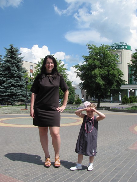 Елена, вы темная брюнетка, поэтому когда надеваете темные (в цвет волос) вещи с распущеными волосами, это утяжеляет образ. Закалывайте, убирайте от лица с этим платьем! И босоножки поменяйте на лодочки, лучше цветные. А осенью должно быть хорошо с цветными (но не вырвиглаз, а насыщенными) колготами и обувью в цвет колгот.