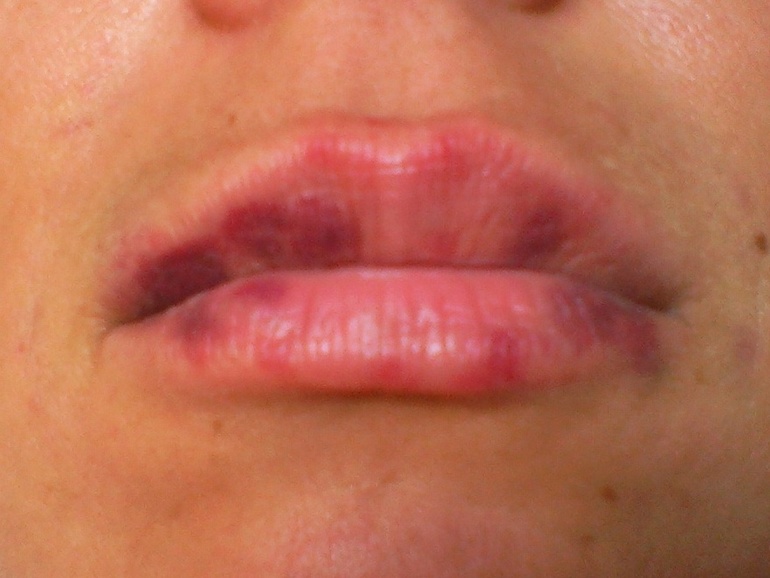 еще раз обращу внимание что губы - парочку дней и все будет в порядке - уже видно все контуры)) только синяки сойдут... поскорее б)