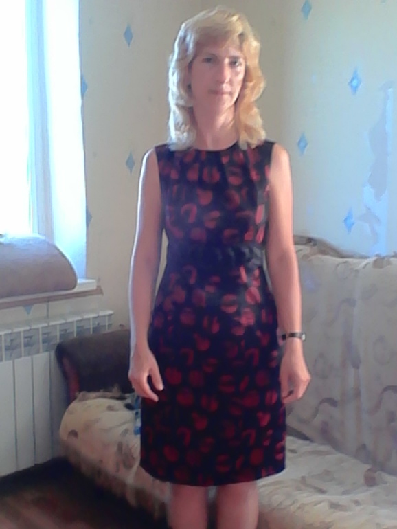 Про прическу тут уже сказали, присоединяюсь.. Надо бы сменить, пора уже.. Чем старше, тем волосы короче..Платье — силует хороший, фасон скорее ВАШ, чем НЕ Ваш. Фигура у Вас хорошая, думаю, что и ноги хорошие, это надо подчеркивать, в этом плане Вы правильно выбрали платье. Но вот цвет и орнамент конечно нужен другой. Очень мрачно.. ЧТо-нить посвежее Вам надо, а то смотрится тяжело..
