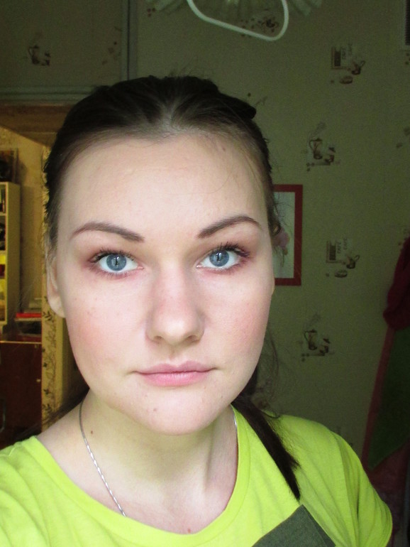С косметикой тоже напряг: у меня голубые глаза. Крашу либо коричнево-бежевыми тенями+карандаш(не всегда), плюс почти всегда румяна и бронзер. С помадой так вообще видимо придется забыть,а я только к ней привыкла))