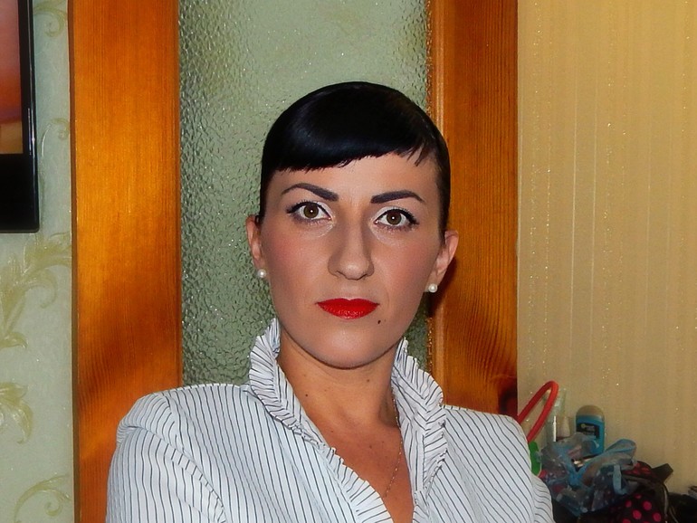 Мне кажется, что другой немного оттенок надо... Чуть малиновую.А с короткими волосами с косой челкой очень классно, кстати!!!