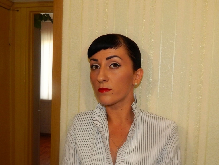 Хотела Пин-ап ,но на моих глазах более толстые стрелки нельзя заламываются в складке. И слишком смуглая для него)