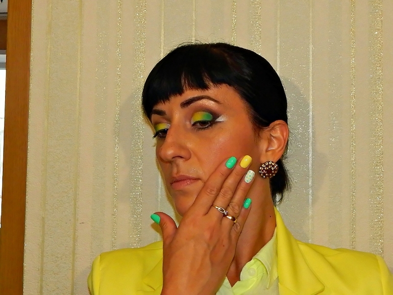 МакияжСегодня муза меня посетила на такой макияж. Вчера сделали ноготки такие по моей просьбе , сегодня макияж под ноготки. Пиджачок лимонный в тему)