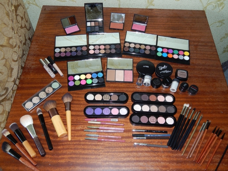 обалдеть!!!! представила свой скромный — тушь, пудра, тонак, румяна, блеск для губ. И какие там тени, ими редко пользуюсь))