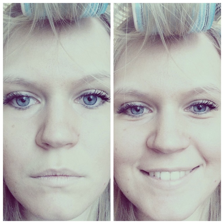 В общем когда улыбаюсь под глазами появляется прослойка некрасивая, без улыбки все хорошо...