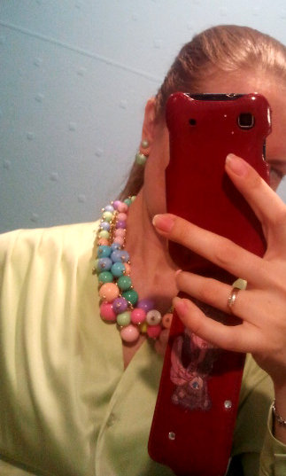 Оцените образПодарили мне бусики и, по-моему, они подошли к моим недавно приобретенным сережкам, которые я тут уже показывала. Или не стоит их вместе носить? Попыталась максимально понятно сфотографировать, но, как я уже говорила: селфи - не мой конек)