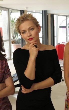 На протяжении всего фильма у нее были волосы,как на приложенном фото. Знаю, что у актрисы "родные" волосы - прямые.