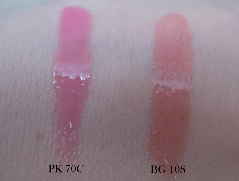 Блеск BG 10S с легким шиммером, блеск PK 70C матовый, полупрозрачный.