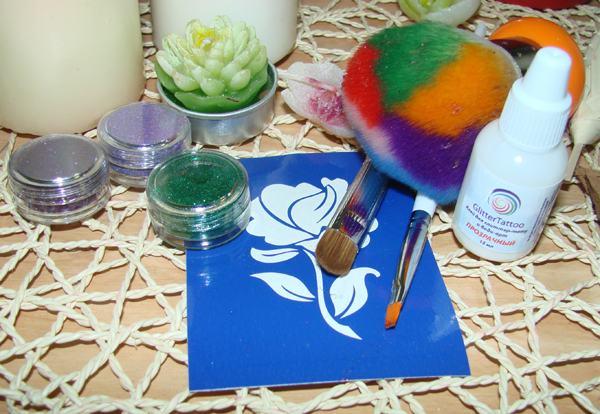 - Клей для блеск-тату. Я покупаю клей фирмы Glitter Tattoo, он гипоаллергенный и можно использовать на детях от 3 лет