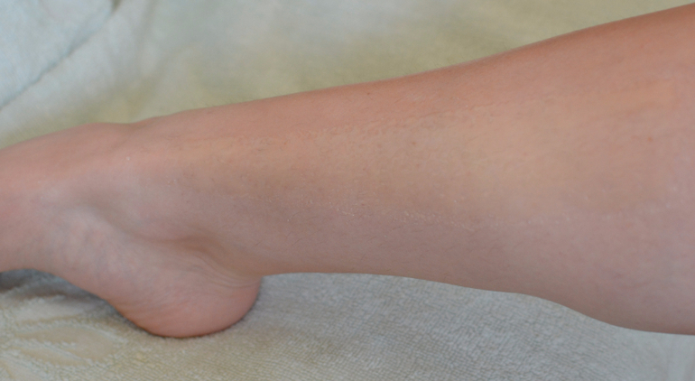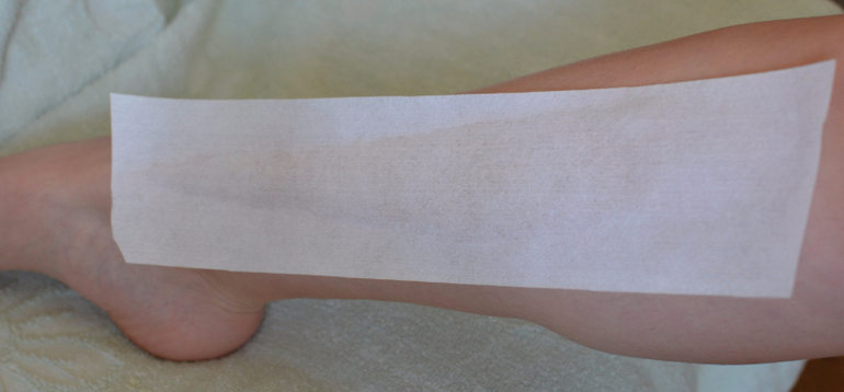 Дальше, наношу пасту тонким слоем на следующий участок и снимаю ее этой же полосой. Полоску можно использовать до тех пор, пока на ней не окажется слишком много пасты. На одну голень мне одной полоски обычно хватает.
