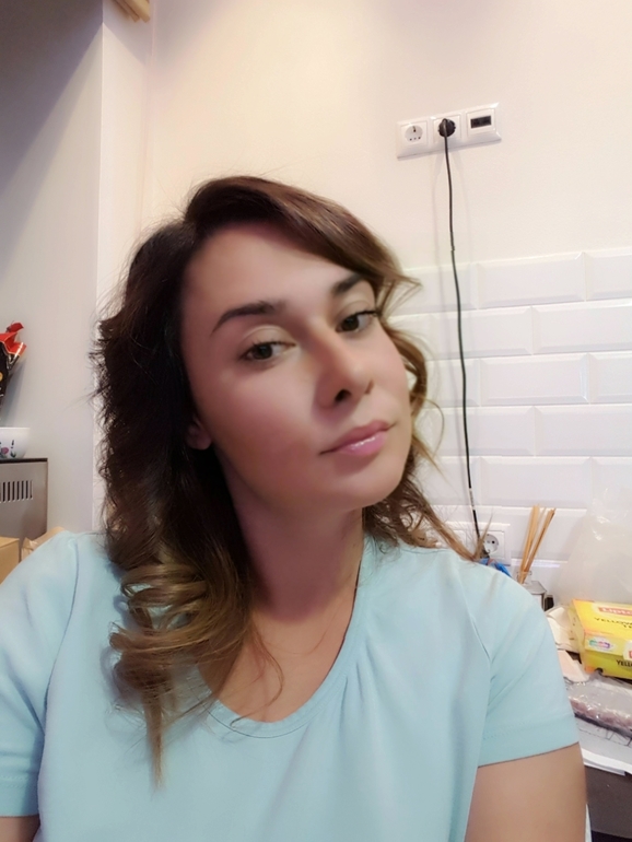 На телефоне фото сейчас есть только такое. Освещение не очень, фильтр какой-то есть. Но главное - примерно видно типаж внешности и длину волос.