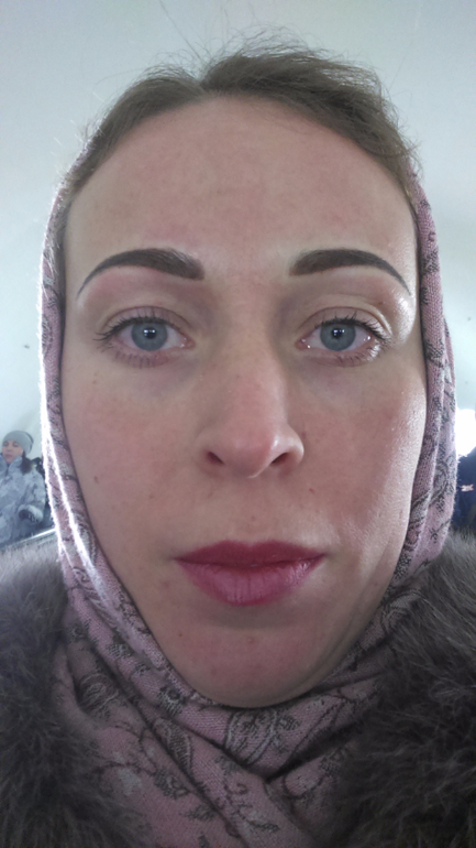 На приеме Анна нарисовала мне брови как она их видела. Мне понравились, но форма была мне не привычна . Лицо вроде мое, но не мое. Я хотела , что бы форма осталась прежней . Перерисовали. С цветом определились сразу. Вся процедура заняла около 2 часов. Может чуть меньше. Было не больно, но не приятно поначалу. Потом привыкла.