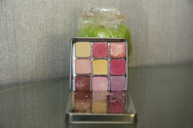 В жизни глаза были ярче, собстно как на свотчах самые яркие оттенки. На скуловой косточке использовала бледно желтый оттенок в качестве хайлайтера. Выглядит потрясающе. Получается очень деликатное свечение (кстати наносила сухой кистью, поэтому можете иметь представление о том, как оттенки переносятся в сухом видеВ целом, получился довольно нежный макияж )