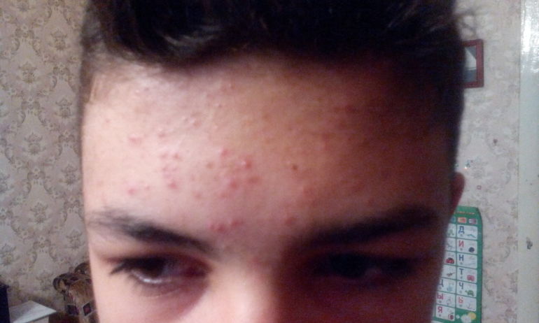 Уход за лицом и шеейУ сына весь лоб обсыпан прыщами.Они красные, воспаленные.. .Из за них лоб кажется сплошным красным пятном...Постоянно протирает лоб лосьонами с салициловой кислотой.Поначалу помогало, пока прыщей было меньше,но чем старше становится, тем больше прыщей.Посоветуйте хорошие препараты.И научите, как правильно ухаживать за лицом подростку.Понятно, что с это временно, но такая кожа напрягает сына, ему самому не нравится.Хотя бы красноту уменьшить..Вот приблизительное фото, но видно плоховато...