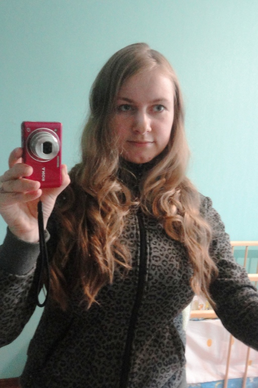 Здесь без особой укладки, но мне всё равно нравится. Периодически собираю волосы в "луковку" на макушке, через время распускаю, получается неплохой объем и подкрученные концы)))