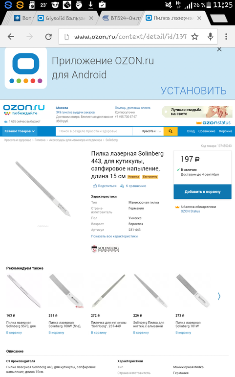 Я долго не могла пилочку подобрать. Все пилочки повреждали ногтевую пластину и не справлялись с грубой кутикулой. Сейчас у меня лазерная пилка Mertz 966 http://4-klik.ru/mertz-966-lazernaja-pilka-115-sm/ Советовала мне её мой мастер маникюра. Она не травмирует ноготь и отлично его полирует. Пилочка с кутикулой отлично справляется. Я довольна.