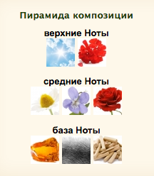 Вот так выглядит пирамида аромата, но в реальности вы услышите моноаромат розы, достаточно натуральный.