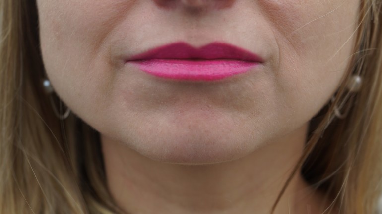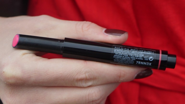 Это насыщенный розовый оттенок, не для женщин, а скорее для молодых девушек. Но это моё субъективное мнение. Теперь о самой помаде. Футляр как раз такой как мне нравится. В виде карандаша черного цвета. Дизайн очень лаконичный, не люблю разные тюбики золотого цвета, с которых потом слетает крышка со временем и помада в косметичке превращается в чёрти что. Тут крышечка держится абсолютно плотно, ни разу не снималась сама по себе. Помада в виде столбика, её не сильно много, но за счет насыщенного цвета её хватает надолго, притом прилично. До покупки этой помады я пользовалась обычной, а сверху наносила блеск для губ. Т.к. очень люблю чтобы губки блестели. Благодаря Tint in balm эта проблема у меня отпала и теперь я ношу только её с собой, т.к. она сама по себе за счет составляющих как у бальзама, дает блеск и объем. Запах у неё не резкий, после нанесения чувствуется не очень долго. Мне нравится, нет ощущения что выпил флакон духов. Не растекается, довольно стойкая не смотря на мягкую текстуру. Хочу попробовать еще один оттенок