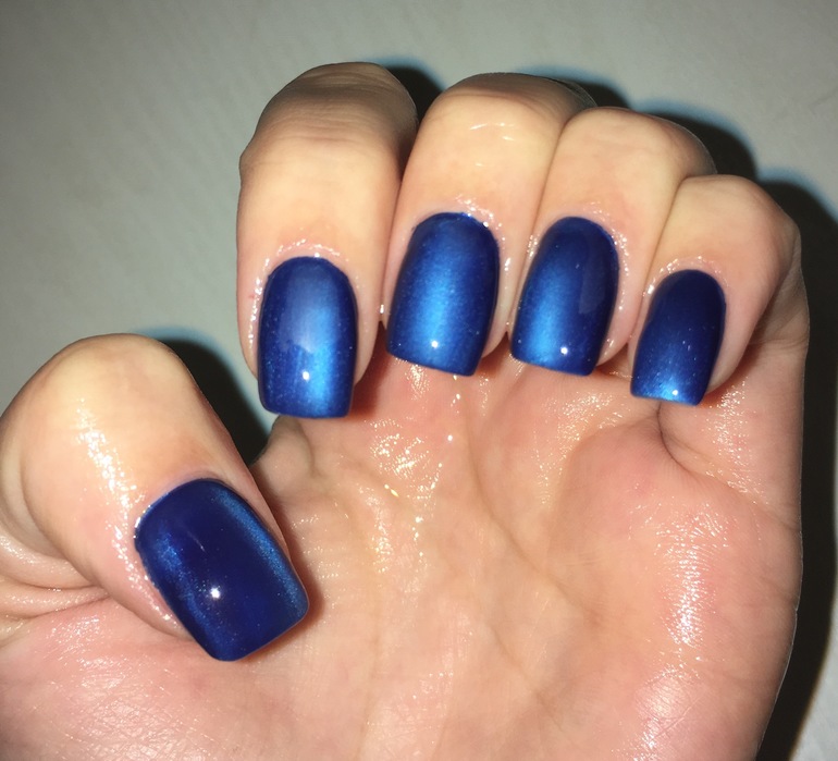 Матовый мне нравится намного больше. Как раз то, что я хотела ))) Не могу налюбоваться! Так что очень рекомендую покрытие «кошачий глаз», особенно в синих и фиолетовых оттенках 😉 Бомбически смотрятся!
