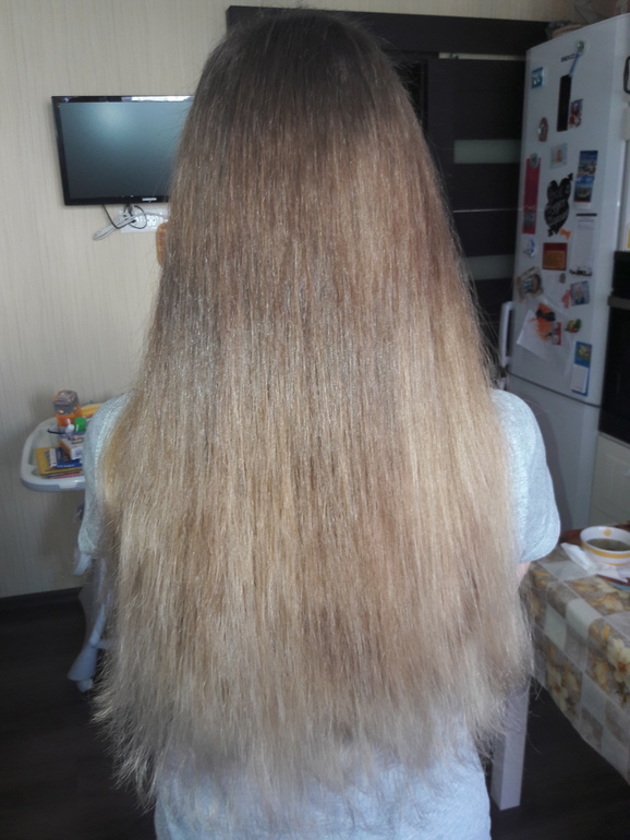 Для тех, кто спрашивал как выглядит после мытья головы. Вот сегодня помыла и феном вытянула, без утюжка остаются пушистыми, но так же блестят