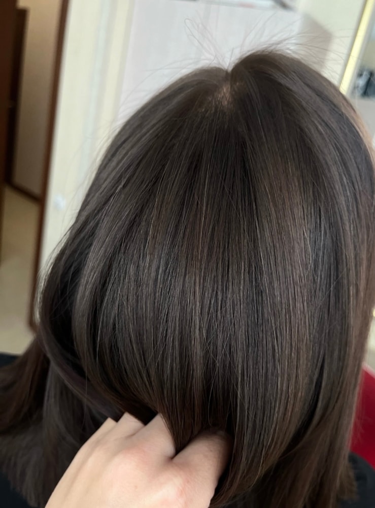 Елена, у меня тоже была еле заметная совсем, но и она меня угнетала. Теперь у меня ооочень холодный оттенок чему я безумно рада) ни один мастер не мог этого добиться с моими волосами ранее…