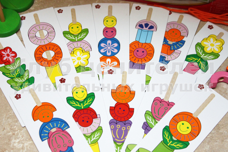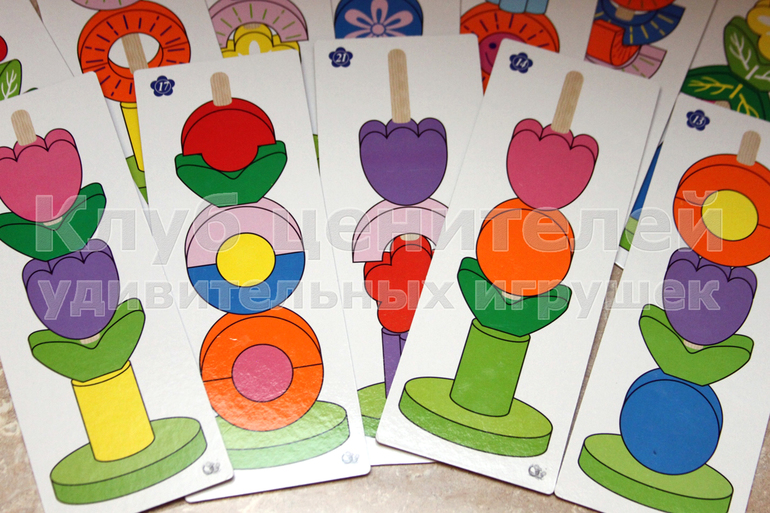 На одной стороне карточек нужно собрать цветочки из деталей с рисунком, а на другой - без рисунка.![]()